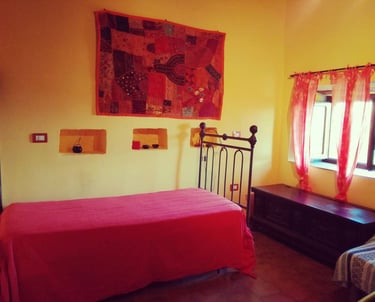 Dalle sue tre finestre potrai godere di una vista spettacolare su Castiglione in Teverina, i vigneti della valle e le montagne verso Montecchio (TR). Il balconcino, invece, si affaccia sulla suggestiva piazzetta del borgo, perfetto per respirare l’atmosfera del paese.