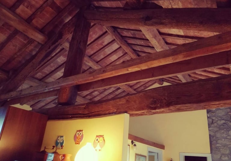 con travi a vista, tipici dell’architettura rurale medievale.